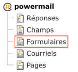 Une sélection des différents types d'enregistrements apparaît. Sélectionnez le type Formulaires dans la rubrique powermail :