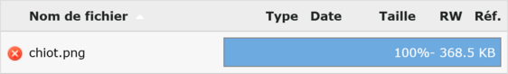 Pour chaque fichier envoyé, une barre de progression s’affiche montrant l’évolution de l’envoi :