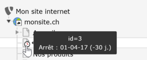: cette icône indique que la page n’est pas publiée, ce qui est le cas dans les deux exemples ci-dessus.