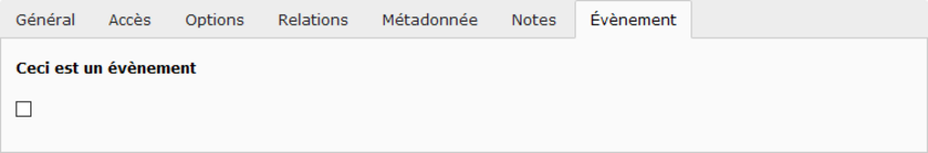 Un événement est un type particulier d'actualité. Pour créer un événement, il faut donc d'abord créer une actualité qui sera ensuite marquée comme événement. La marche à suivre pour la création d'une actualité se trouve dans le chapitre Créer une actualité.