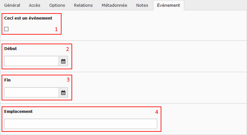 - La case Ceci est un événement doit impérativement être cochée pour transformer l'actualité en événement.