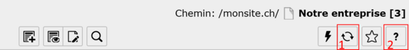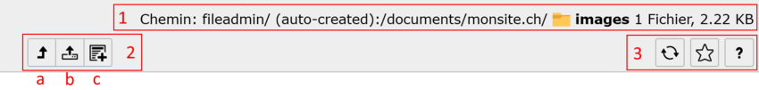 - Ces icônes ont la même fonctionnalité que pour les menus vus précédemment et permettent respectivement de recharger le répertoire, créer un favori et voir l’aide sur la liste de fichiers.