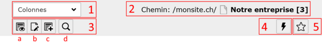 - Le chemin de l’arborescence jusqu’à la page courante est affiché ici. Le nombre entre crochets qui suit le nom de la page (dans l’exemple : 3) représente le numéro d’identifiant de la page.