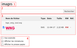 - Fichiers : gestion des fichiers média de votre site.
